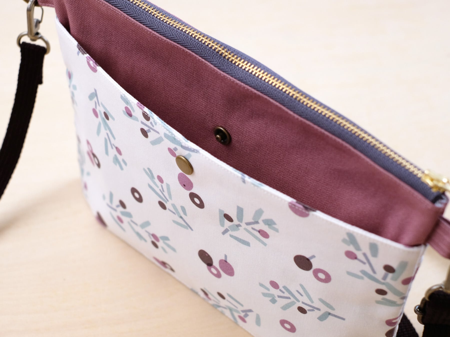 『オリーブ』柄の生地を使用したサコッシュができました。